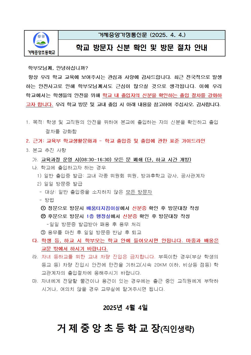 2025년 1, 4학년 학생 정서·행동특성검사 안내문