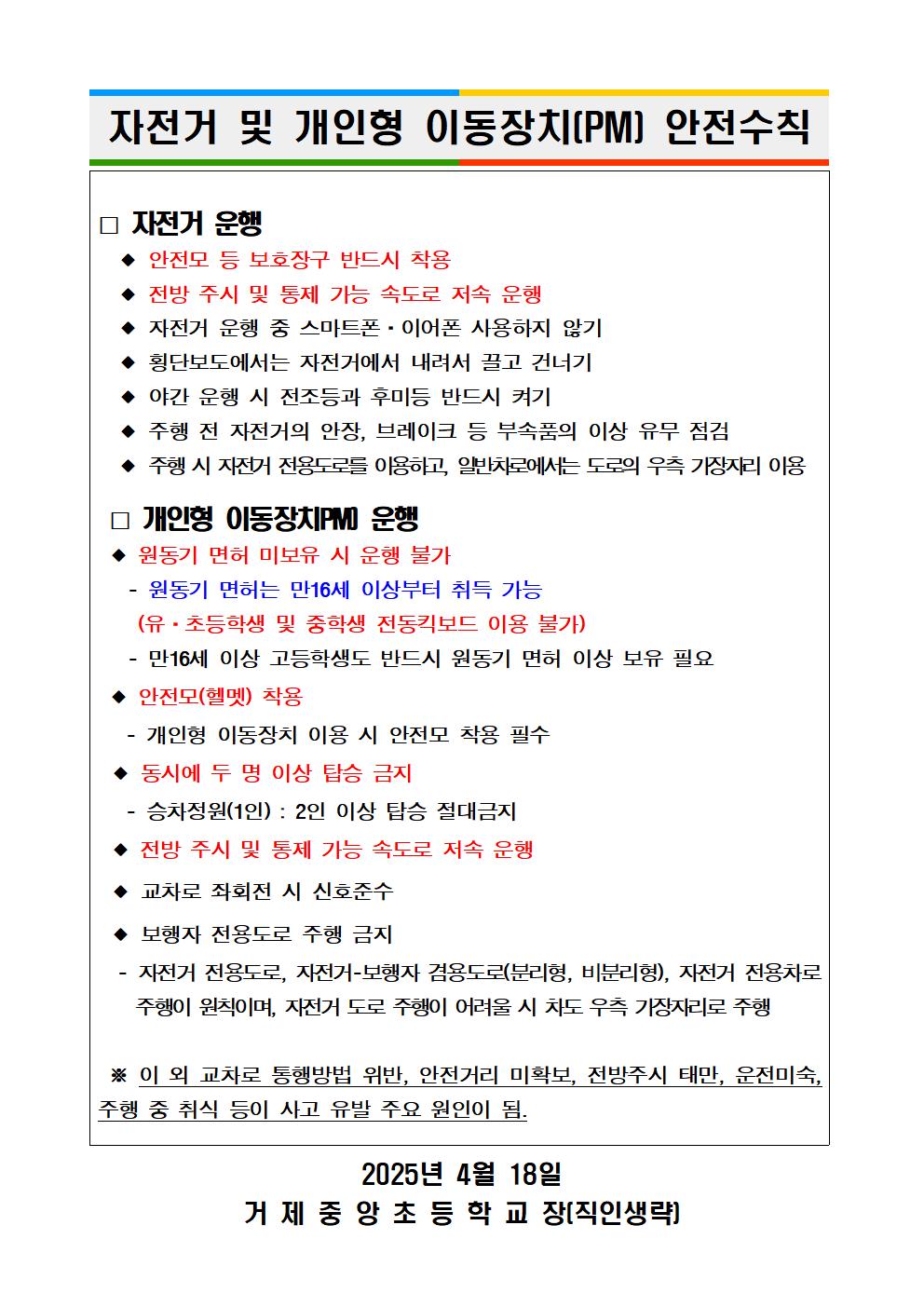 자전거 및 개인형 이동장치(PM) 안전수칙
