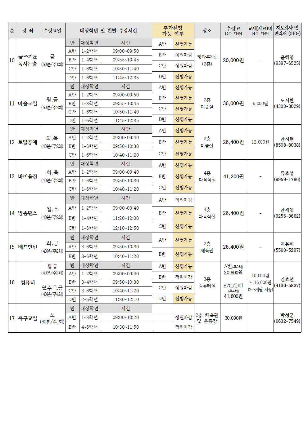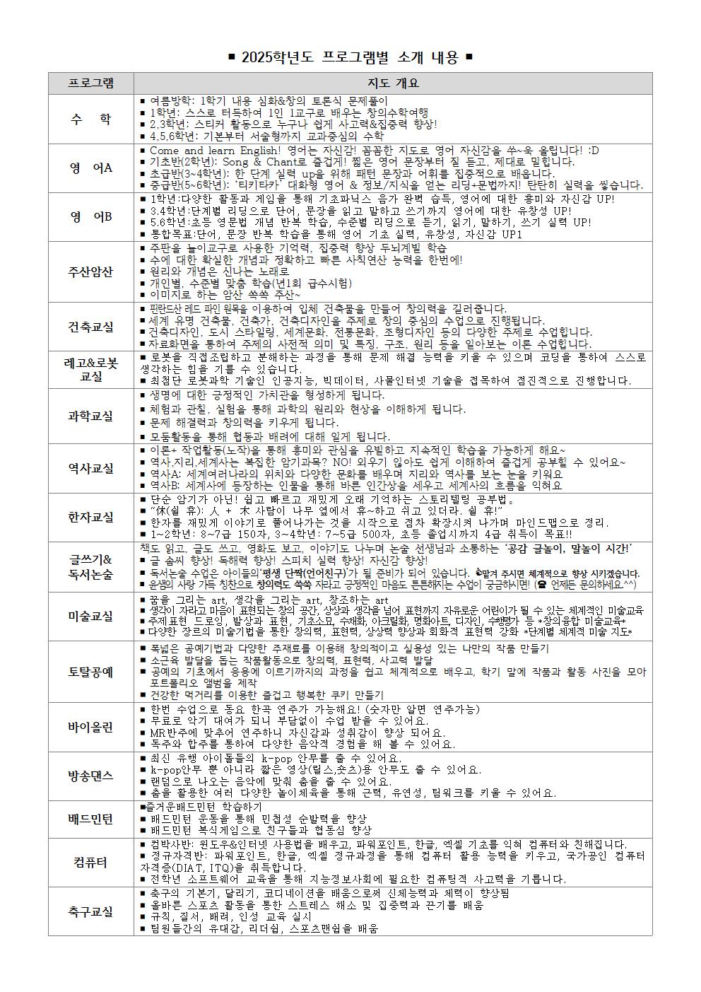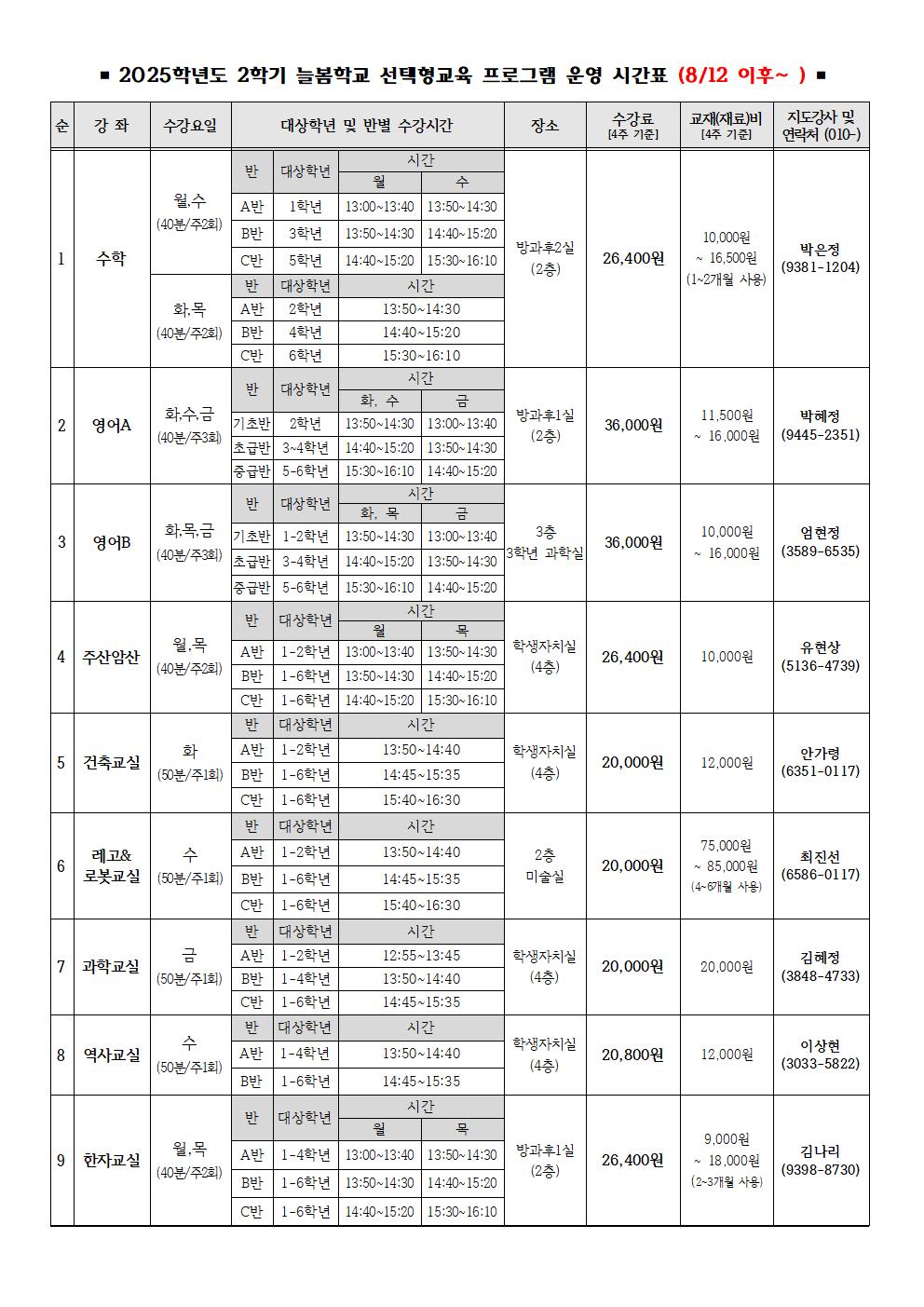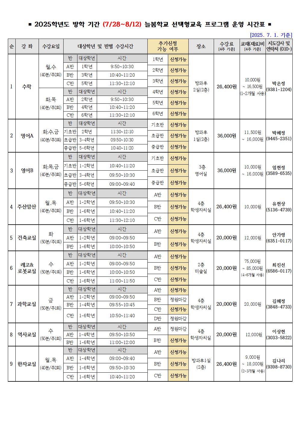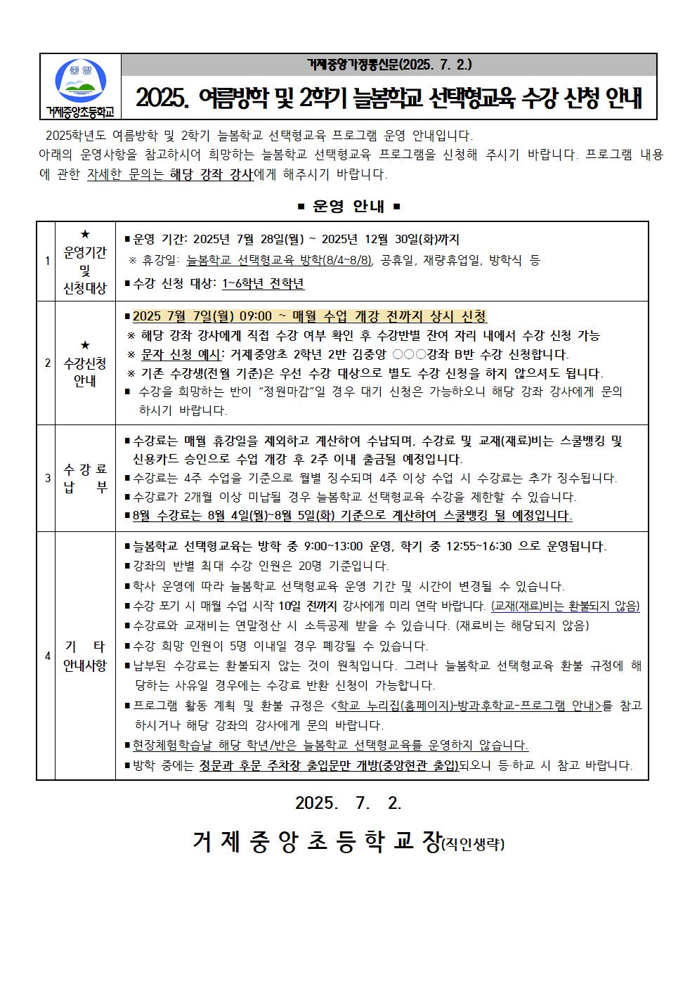 2025. 여름방학 및 2학기 늘봄학교 선택형교육 수강 신청 안내